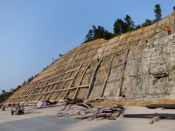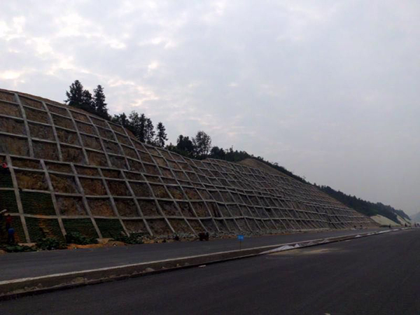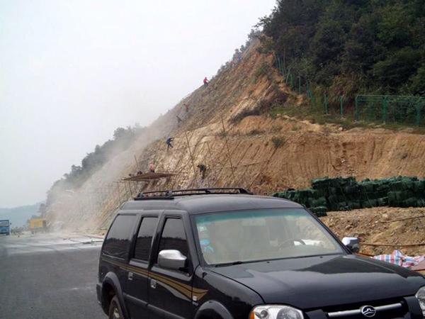 隨岳高速錨桿框架梁支護(hù),植生袋液壓噴播植草